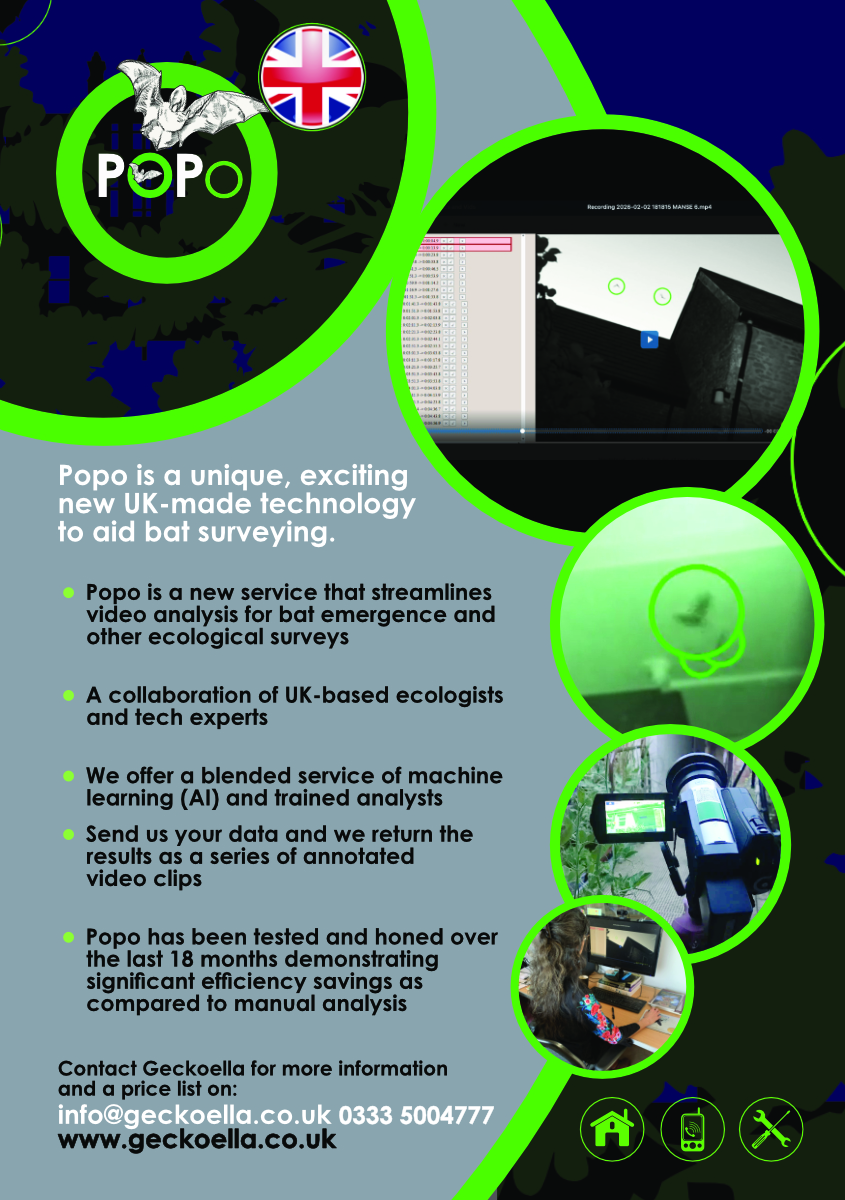 We have something truly special to share this year. We are officially launching POPO – a unique, UK-made technology designed to revolutionise bat surveying. Developed through a collaboration between UK ecologists and tech experts, POPO uses machine learning (AI) to streamline video analysis for bat emergence and other ecological surveys.
